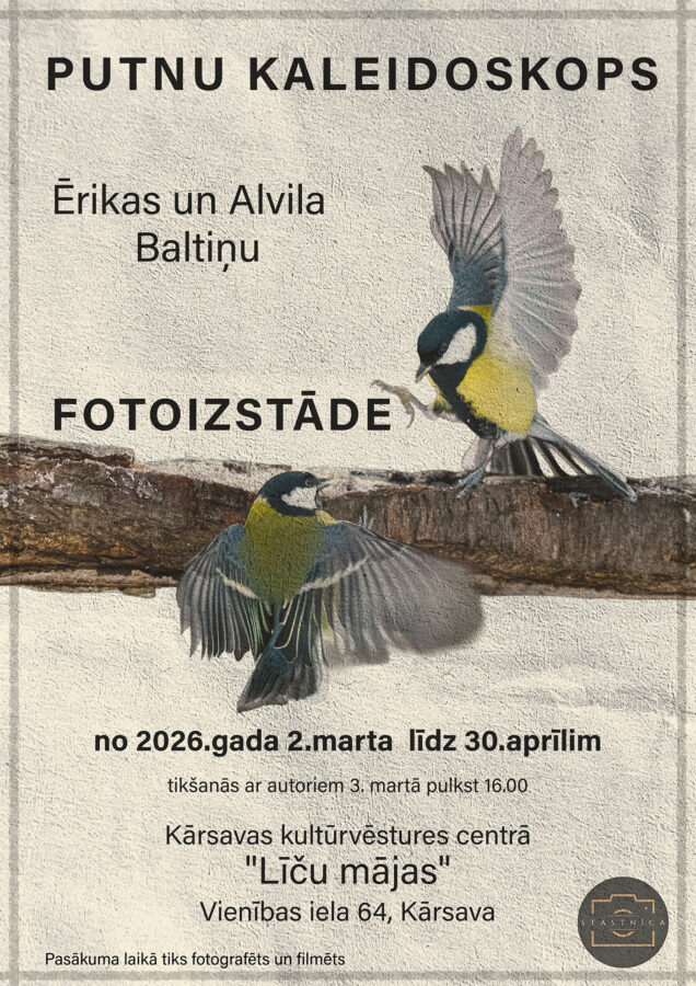No 2026.gada 2. marta līdz 30 aprīlim norisināsies biedrības “Stāstnīca” un Latgales fotogrāfu biedrības dalībnieku Ērikas un Alvila Baltiņu fotogrāfiju izstāde “Putnu kaleidoskops”. Izstāde iepazīstina ar Latvijā sastopamo piemājas putnu fotogrāfiju, atklājot gan ikdienā sastopamus, gan retāk pamanāmus dabas mirkļus. Autori savās fotogrāfijās akcentē putnus kustībā — lidojumā, medībās un rūpēs par mazuļiem, vienlaikus atklājot arī putnu dzīvi tuvplānā, ļaujot ieraudzīt smalkas detaļas un iepazīt putnu pasauli no jauna skatpunkta.
